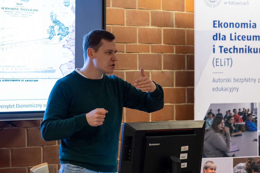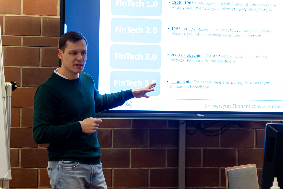 Spotkanie poprowadził dr Mateusz Muszyński z Katedry Bankowości i Rynków Finansowych nt.: "Przedsiębiorstwo sektora Big Tech w gospodarce globalnej".