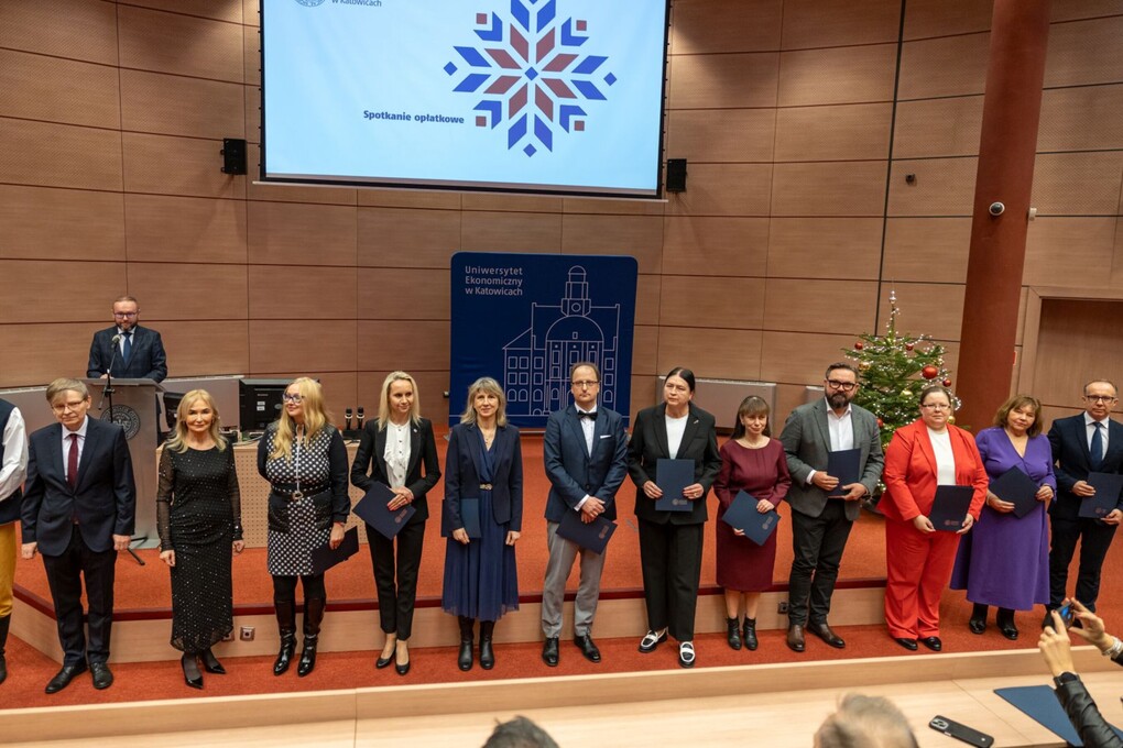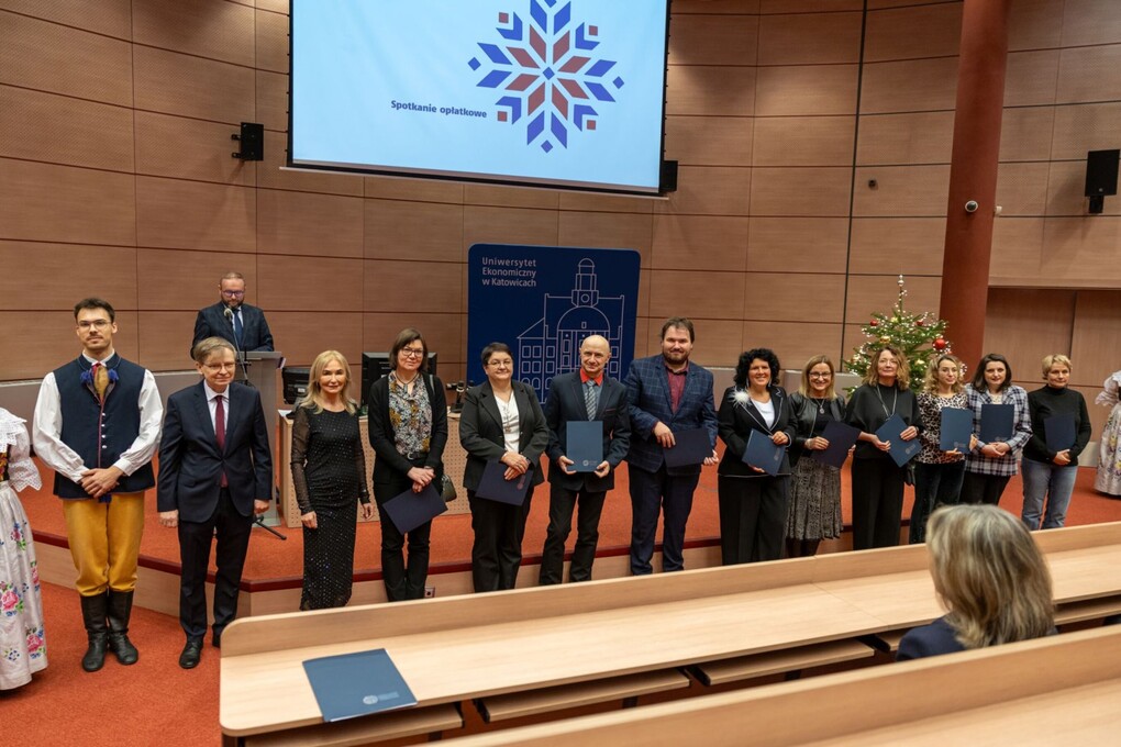 Z dumą informujemy, że pracowniczki Katedry - Pani prof. UE dr hab. Agnieszka Przybylska-Mazur oraz Pani prof. UE dr hab. Monika Hadaś-Dyduch - nagrodzone zostały grantami rektorskimi za publikacje artykułów w roku 2025 w wysokopunktowanych czasopismach naukowych. Granty z rąk Pani Rektor odebrały podczas spotkania opłatkowego z pracownikami uczelni.