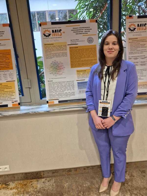 Podczas konferencji mgr Anna Sikora zaprezentowała badanie pt. “Związek dekarbonizacji przedsiębiorstw z wynikami finansowymi – analiza bibliometryczna”.