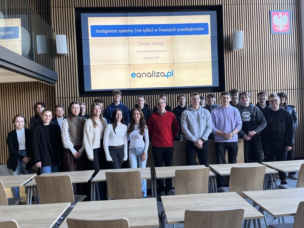 W dniu 20 stycznia 2026 r. mieliśmy przyjemność wysłuchać wykładu eksperta, jednocześnie praktyka Pana dr inż. Tomasza Jastrząb z firmy Technicenter Sp. z o.o. Gość na zaproszenie dr Małgorzaty Lipowicz poprowadził wykład dla Studentów kierunku Sztuczna inteligencja i Data science w ramach przedmiotu Finanse w gospodarce cyfrowej.