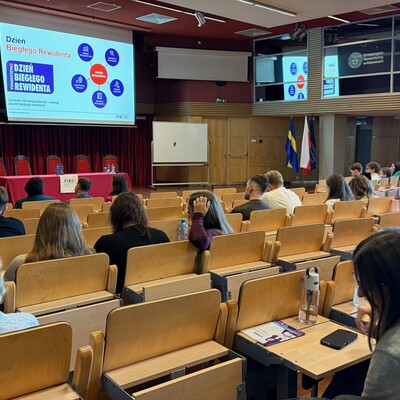 W spotkaniu uczestniczyło ok. 180 studentów naszej Uczelni różnych kierunków, którzy mogli odkryć zawód biegłego rewidenta jako łączący liczby z odpowiedzialnością społeczną.