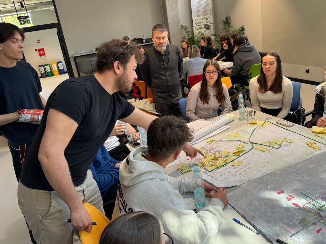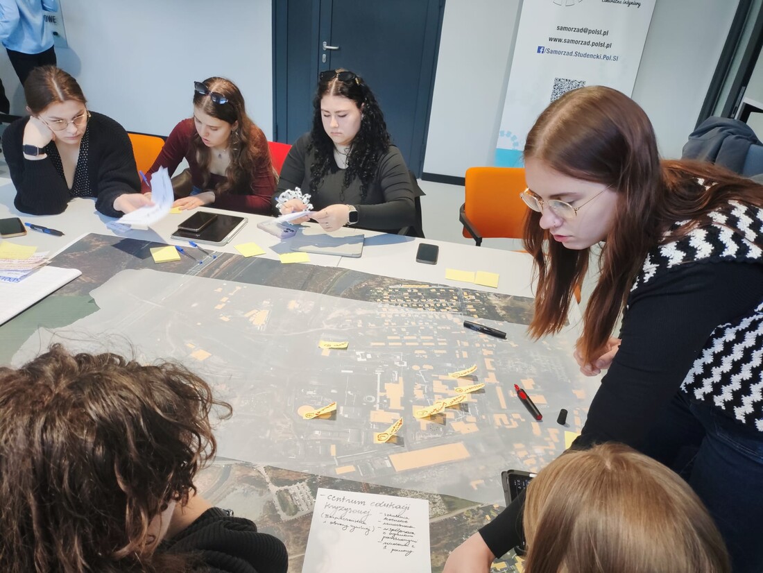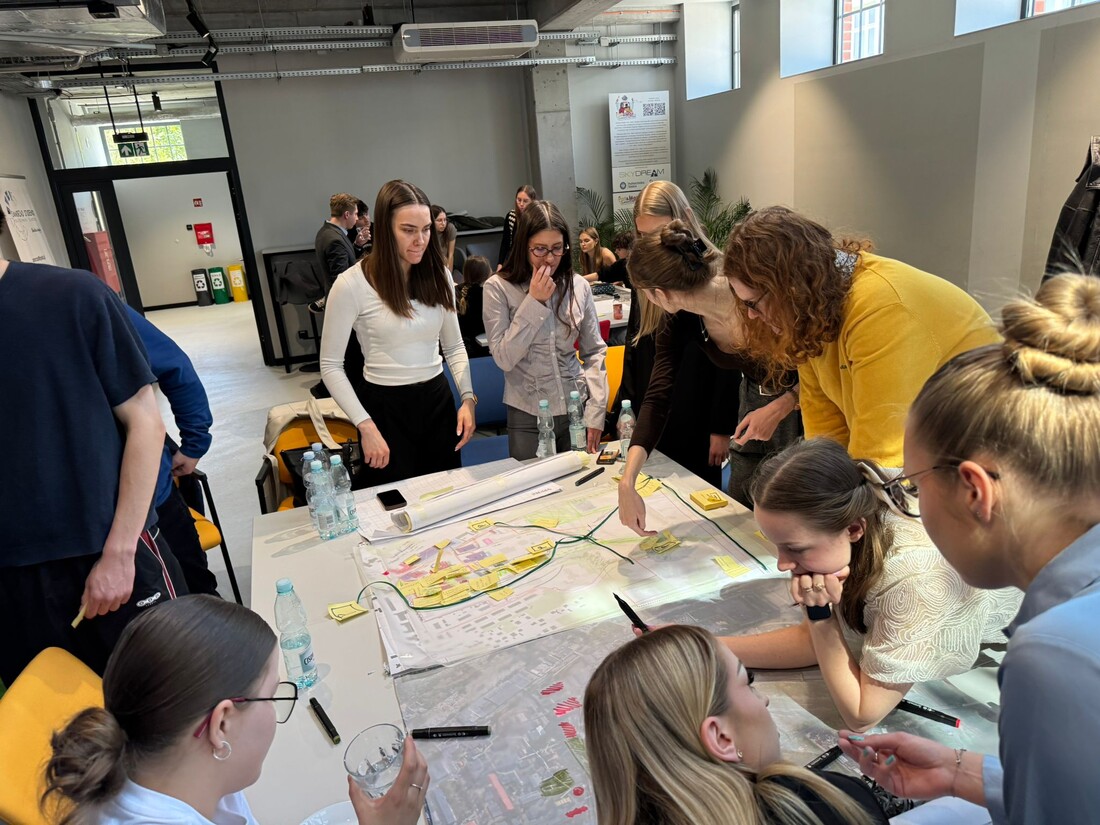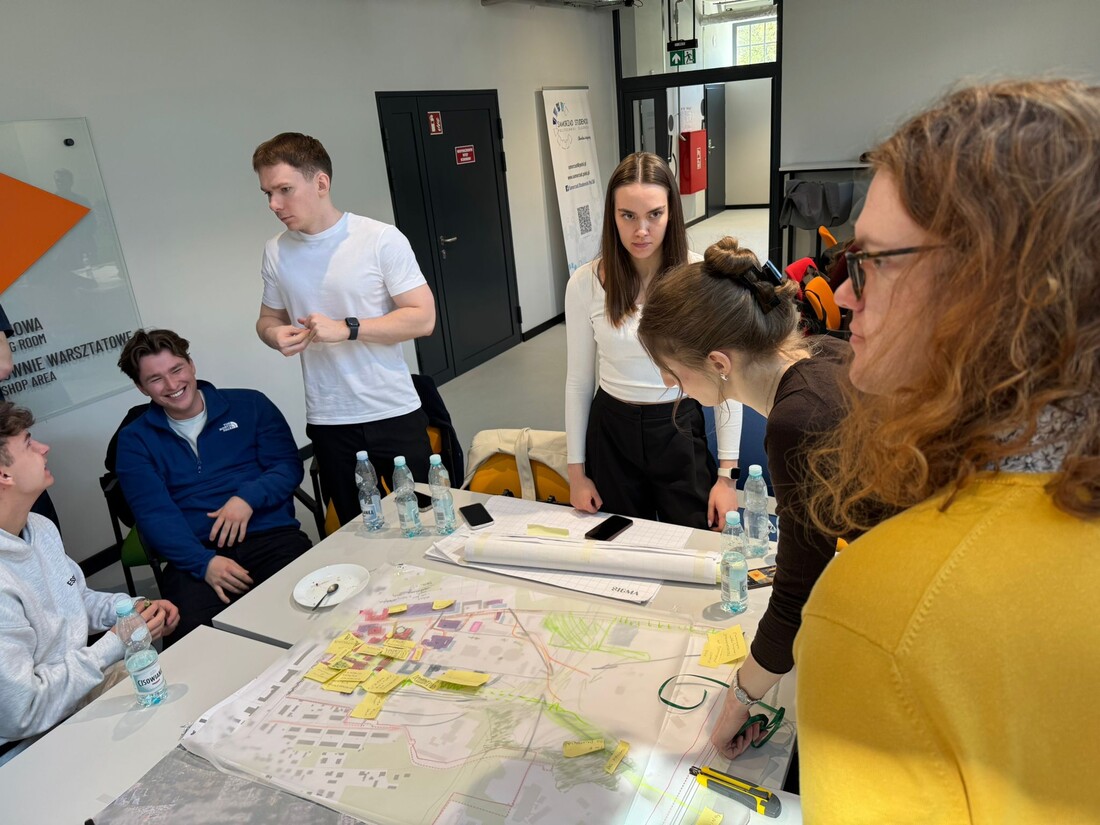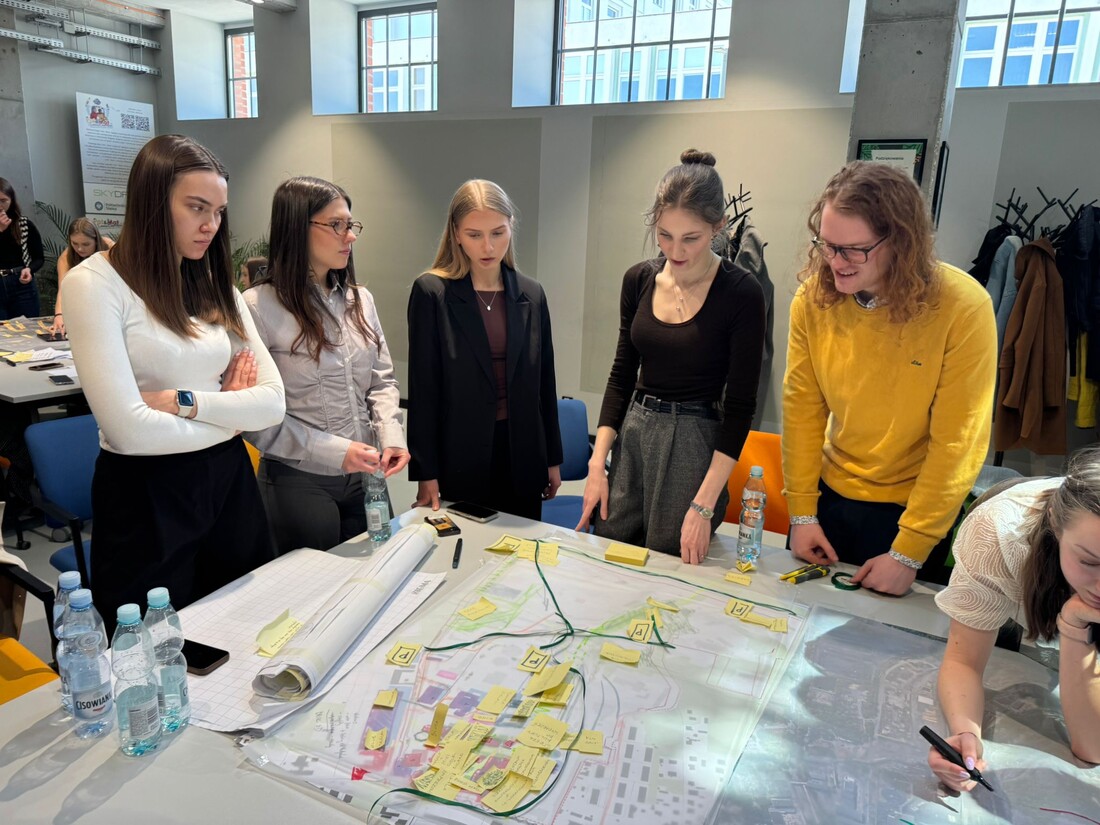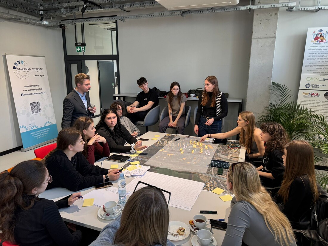 W murach Politechniki Śląskiej w Gliwicach, studenci kierunku Gospodarka Miejska i Nieruchomości (Uniwerystet Ekonomiczny w Katowicach) oraz kierunku Architektura (Politechnika Śląska) spotkali się by wypracować strategie transformacji obszarów wraz z wariantowymi koncepcjami ich zagospodarowania. 28 kwietnia 2026 roku w ramach kolejnego etapu prac odbył się drugi w tej edycji warsztat wizyjny podczas którego studenci koncentrowali się nad identyfikacją i uszczegółowieniem możliwych do realizacji przedsięwzięć o charakterze społecznym, gospodarczym i infrastrukturalnym. Warsztat stanowił istotny etap procesu projektowego, porządkujący dotychczasowe ustalenia i wyznaczający ramy dla dalszych prac koncepcyjnych realizowanych w ramach Laboratorium Projektu.