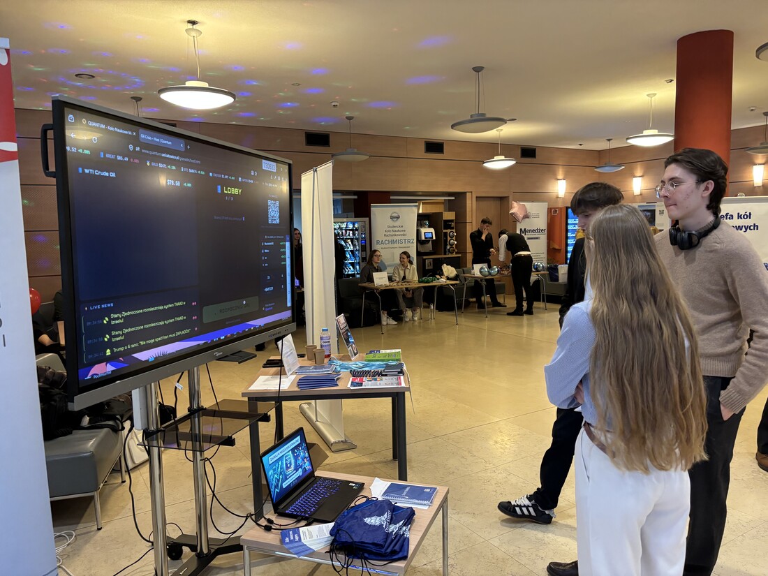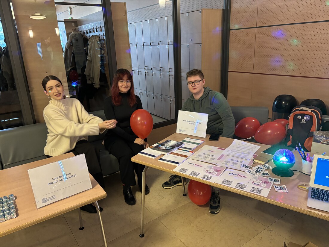 Stefa wystawiennicza dla Kół Naukowych UE była przygotowana w głównym holu CNTI i już po wejściu do budynku młodzież szkolna mogła podejść do stoisk promocyjnych Kół Naukowych, zapoznać się z ich ofertą, brać udział w grach, konkursach i innych atrakcjach przygotowanych przez Koła Naukowe.