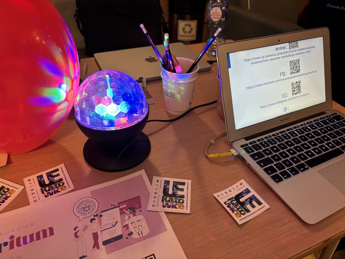 Na stoisku promocyjnym Koła „Meritum” na wszystkich chętnych czekał do obejrzenia film o działalności Koła, quiz „marketingowy”, w którym za poprawną odpowiedź można było otrzymać drobne upominki promujące naszą Alma Mater. Przewodniczący Koła mgr Marek Czekajski oraz Członek Koła – p. Mateusz Baran – odpowiadali na pytania młodych ludzi dotyczące przynależności do Koła, przedstawiali najważniejsze informacje o realizowanych przez członków Koła projektach, przedsięwzięciach i inicjatywach, a także zachęcali uczniów szkół średnich do studiowania na UE oraz zapisania się w przyszłości do Koła „Meritum”.