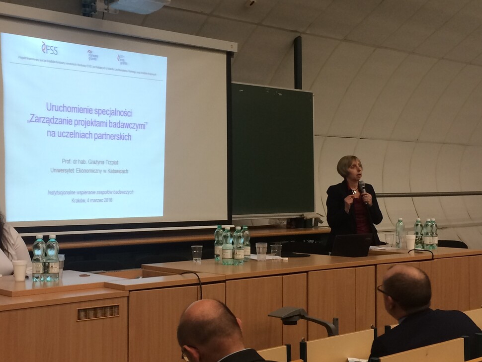 Dnia 4 marca 2016 roku na Uniwersytecie Ekonomicznym w Krakowie odbyła się konferencja pt. "Instytucjonalne wspieranie zespołów badawczych", przygotowana w ramach międzynarodowego projektu "Edukacja dla rozwoju badań i innowacji" finansowana z Funduszu Stypendialnego i Szkoleniowego, ustanowionego w ramach funduszy norweskich oraz funduszy EOG (działanie Rozwój Polskich Uczelni).