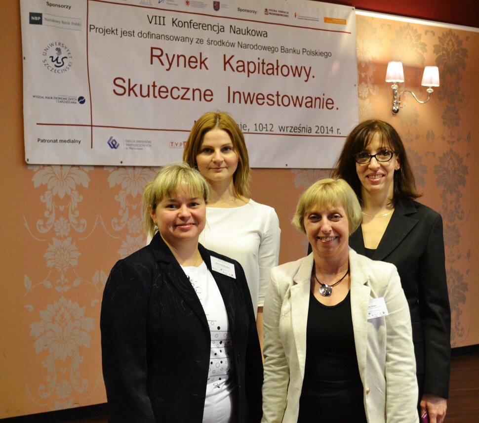 VIII Konferencja Ogólnopolska "Rynek Kapitałowy. Skuteczne Inwestowanie", zorganizowana przez Uniwersytet Szczeciński, odbyła się w Międzyzdrojach w dniach 10-12 września 2014 r. Swoje referaty zaprezentowały Pani prof. zw. dr hab. Grażyna Trzpiot pt. "Zarządzanie ryzykiem długowieczności" oraz dr Justyna Majewska pt. "Ryzyko wyboru wartości progowej w ocenie obserwacji ekstremalnej na rynku kapitałowym".