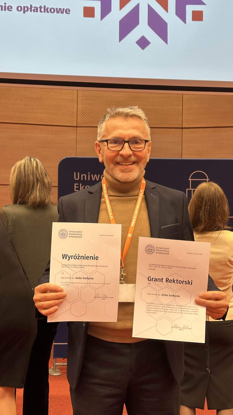 Prof. dr hab. inż. Jacek Szołtysek został uhonorowany Grantem Rektorskim za działalność naukową oraz nagrodą organizacyjną w uznaniu za wybitne osiągnięcia badawcze i zaangażowanie w rozwój organizacyjny Uczelni. Z kolei dr hab. Ewa Płaczek, prof UE otrzymała nagrodę za działalność organizacyjną na rzecz Uczelni, doceniającą jej wkład w sprawne funkcjonowanie i rozwój instytucji. Serdecznie gratulujemy wyróżnionym i życzymy dalszych sukcesów w pracy naukowej oraz organizacyjnej.