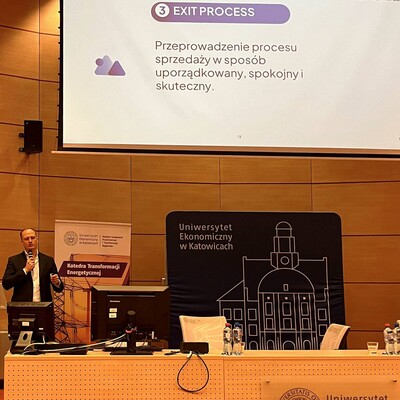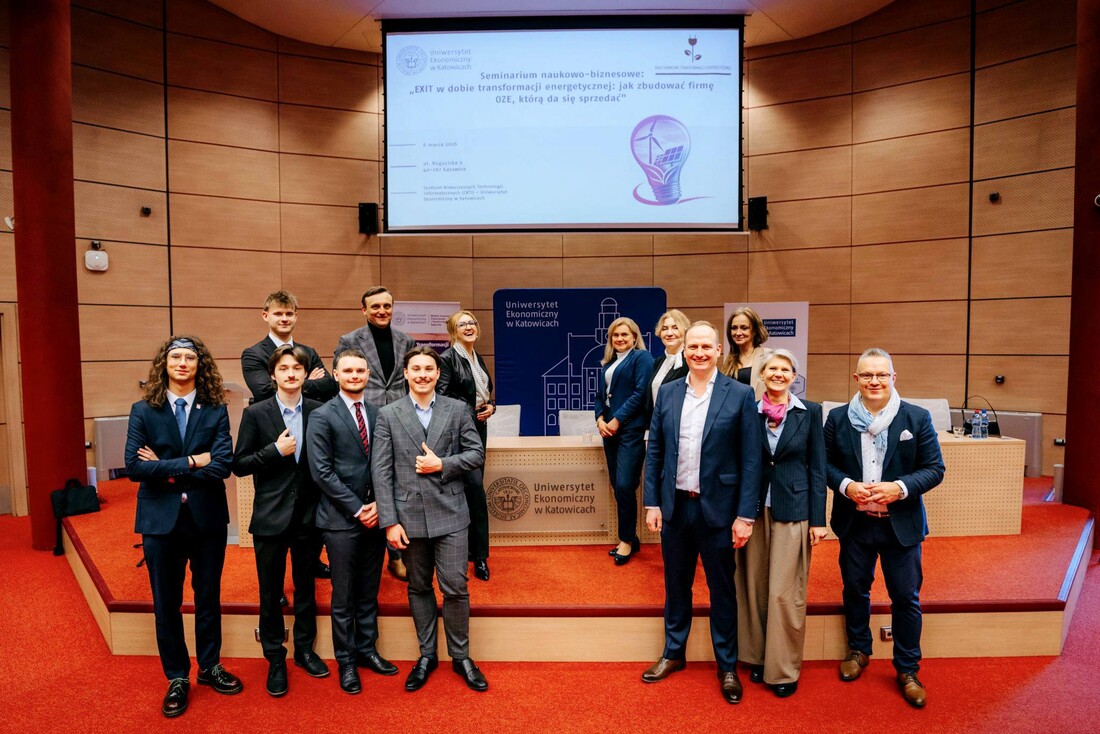 W dniu 6 marca 2026 roku w Centrum Nowoczesnych Technologii Informatycznych Uniwersytetu Ekonomicznego w Katowicach odbyło się Seminarium naukowo-biznesowe pn. „EXIT w dobie transformacji energetycznej: jak zbudować firmę OZE, którą da się sprzedać”. Organizatorami tego wydarzenia były Katedra Zarządzania Marketingowego i Turystyki oraz Katedra Transformacji Energetycznej, wspierane przez Władze Dziekańskie Wydziału Zarządzania oraz studentów z Koła Naukowego Transformacji Energetycznej PWZ.