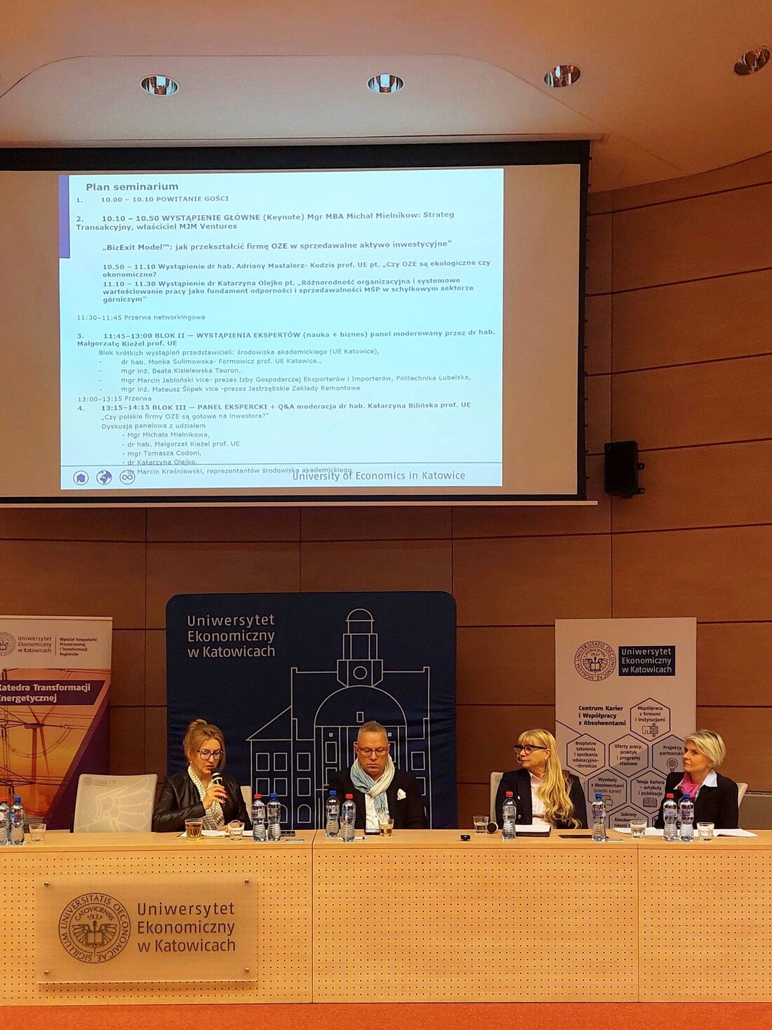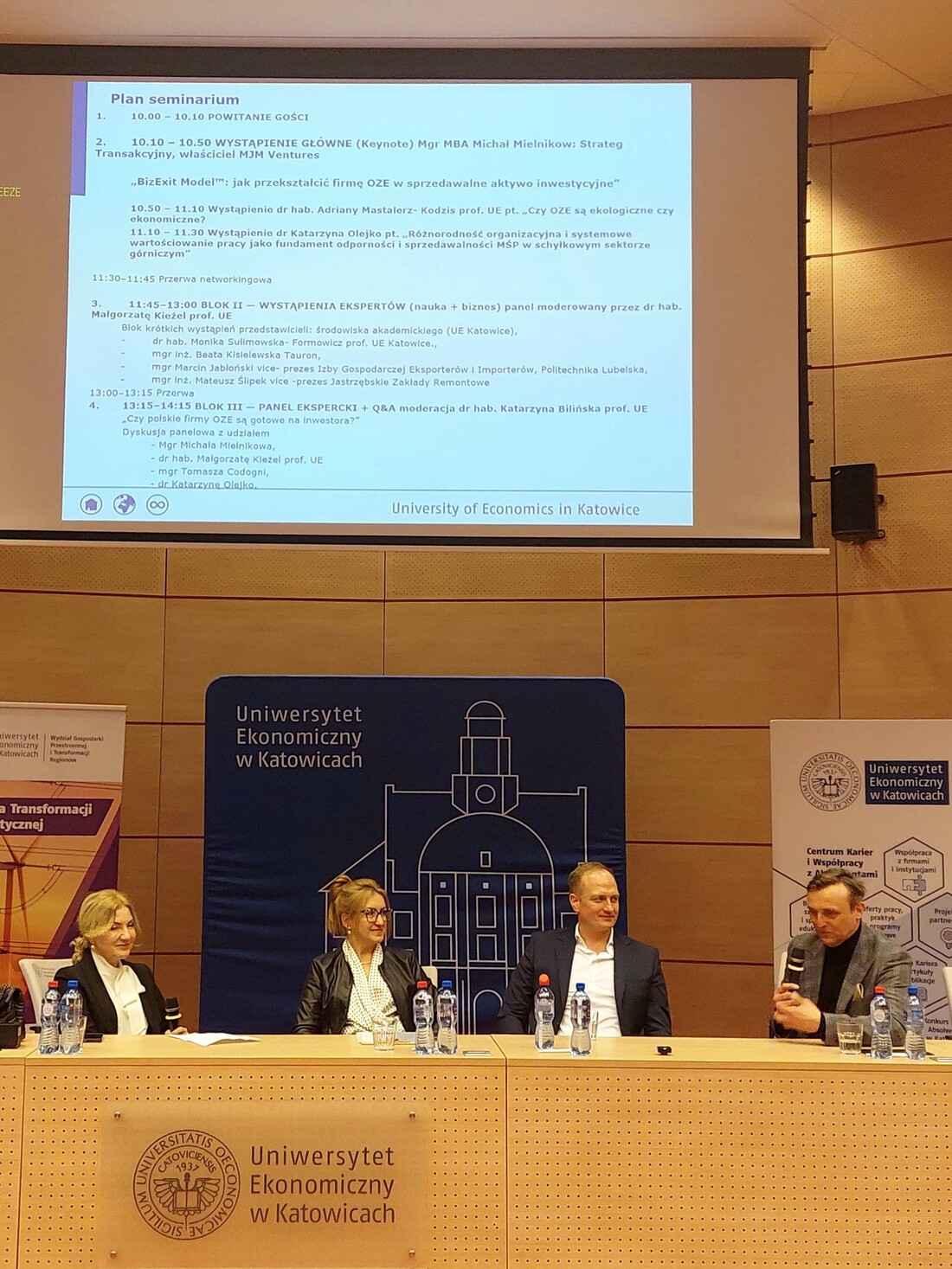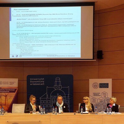 Seminarium zgromadziło przedstawicieli środowiska akademickiego, praktyków rynku energetycznego, przedsiębiorców oraz studentów zainteresowanych wyzwaniami transformacji energetycznej i rozwojem przedsiębiorstw w sektorze OZE. Zgromadzonych gości powitała Kierownik Katedry Zarządzania Marketingowego i Turystyki - dr hab Katarzyna Bilińska, prof. UE - wspólnie z Dziekanem Wydziału Zarządzania - dr hab. Adamem Samborskim, prof. UE - oraz Prodziekan Kolegium Studiów - dr hab. Adrianną Mastalerz-Kodzis, prof. UE. Po powitaniu rozpoczęły się wystąpienia prelegentów oraz dyskusja prowadzone w ramach trzech bloków i paneli tematycznych.