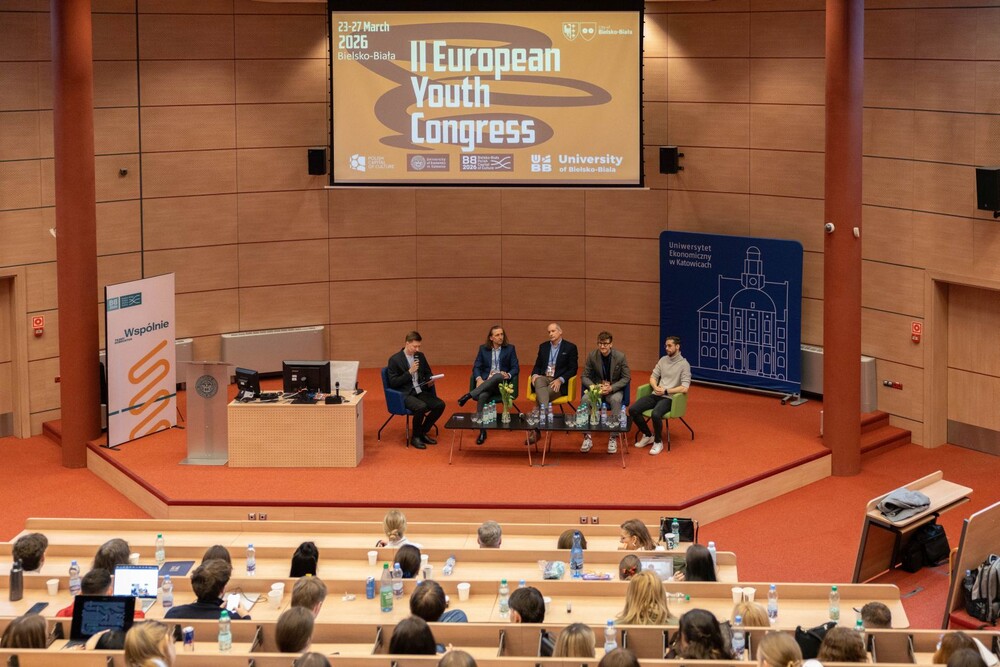 W dniu 26 marca 2026 r. na Uniwersytecie Ekonomicznym w Katowicach odbyła się część programu II Europejskiego Kongresu Młodzieży. Wydarzenie uroczyście otworzyli: Prorektor ds. Kształcenia i Współpracy Międzynarodowej prof. dr hab. Wojciech Dyduch, dr hab. Michał Kucia, prof. UE oraz dr Paulina Żmijowska.