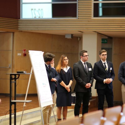 Uczniów i nauczycieli przywitali prof. dr hab. Sławomir Smyczek Prorektor ds. Edukacji i Internacjonalizacji oraz prof. dr hab. Wojciech Dyduch Prodziekan ds. Rozwoju Wydziału Zarządzania. Podczas gdy nauczyciele słuchali wykładu nt. "Trendów na rynku kapitałowym", prowadzonego przez dr. Witolda Gradonia z Katedry Bankowości i Rynków Finansowych, zawodnicy rozwiązali test z zakresu ekonomii, zarządzania i praktyki biznesowej. W trakcie sprawdzania testów uczniowie i ich opiekunowie uczestniczyli w wykładzie "Gospodarka cyrkularna szansą dla przedsiębiorczych" dr. Bartłomieja Gabrysia z Katedry Przedsiębiorczości.