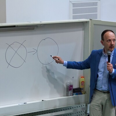 Uczniowie wysłuchali również ostatniego w tym semestrze wykładu pt.: "Podziwiane firmy świata", który wygłosił dr Bartłomiej Gabryś.
