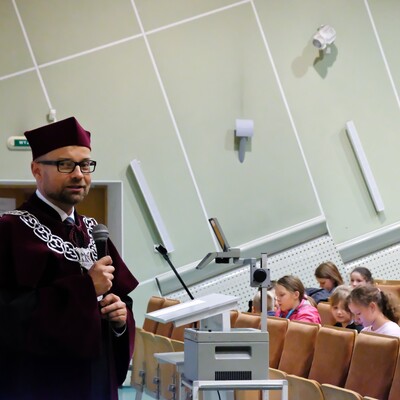 Rodziców i uczniów biorących udział w programach uroczyście powitał Prorektor ds. Edukacji i Internacjonalizacji prof. dr hab. Sławomir Smyczek.
