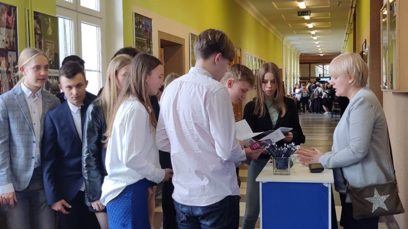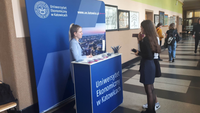 Licealiści mogli także porozmawiać z pracownikami Centrum Marketingu i poznać wszystkie szczegóły dotyczące kierunków, rekrutacji oraz studiowania na naszej Uczelni. Na stoisku czekała na nich słodka niespodzianka.