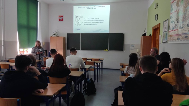 Dr hab. Bożena Frączek, prof. UE z Katedry Bankowości i Rynków Finansowych wygłosiła dla uczniów wykład w języku angielskim pt. "Result and Perspective of Financial Education". Swój wykład pt. "Czas programistów się kończy? Czego warto się uczyć, żeby sztuczna inteligencja nie odebrała Ci pracy w IT". poprowadził również mgr Piotr Glenc z Katedry Projektowania i Analizy Komunikacji.