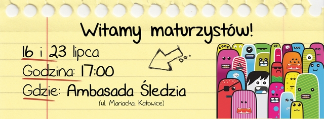 Wyniki rekrutacji są już dostępne! Gratulujemy wszystkim zakwalifikowanym i zapraszamy Was na spotkania integracyjne, które odbędą się w dniach 16 lipca br (środa) i oraz 23 lipca (środa), o godzinie 17:00 w Pubie Ambasada Śledzia, znajdującym się przy ulicy Mariackiej w Katowicach.