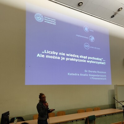 Zajęcia pt. "Liczby nie wiedzą skąd pochodzą… ale można je praktycznie wykorzystać!" prowadziła dr Dorota Rozmus z Katedry Analiz Gospodarczych i Finansowych.