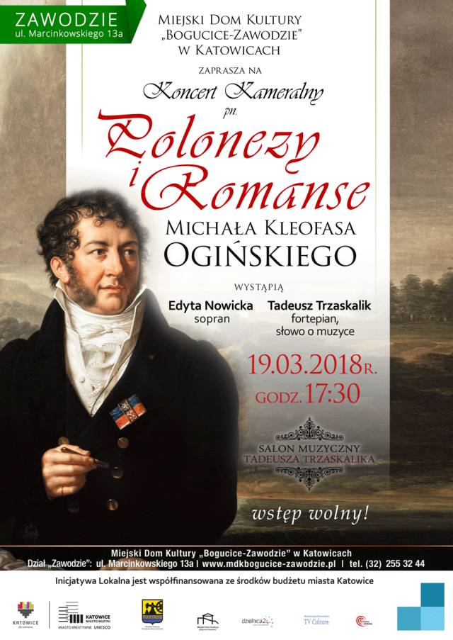 19 marca prof. Tadeusz Trzaskalik wraz z sopranistką Edytą Nowicką zaprezentowali "Polonezy i Romanse Michała Kleofasa Ogińskiego" w Domu Kultury na Zawodziu. Koncert odbył się w ramach "Salonu Muzycznego Tadeusza Trzaskalika". Wydarzenie to przyciągnęło wielu miłośników muzyki klasycznej! Projekt realizowany jest w ramach programu Inicjatywy Lokalnej Miasta Katowice oraz objęty został honorowym patronatem Prezydenta Miasta Katowice.