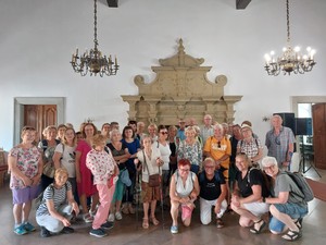 Na początek wycieczki słuchacze udali się do Mucharza - najstarszej miejscowości na Ziemi Wadowickiej. Tutaj odwiedzili kościół św. Wojciecha. Następnie udali się do Suchej Beskidzkiej, gdzie zobaczyli zamek nazywany "Małym Wawelem", który aktualnie pełni funkcję Muzeum Miejskiego. Uczestnicy wycieczki mieli okazję zapoznać się z wystawami „Zamek i miasto Sucha Beskidzka”, „Malarstwo nowożytne i broń myśliwska Habsburgów” oraz „Osadnictwo w Dolinie Skawy”. Kolejnym punktem na mapie wycieczki była Karczma "Rzym", w której był czas na posiłek. Po chwili odpoczynku grupa pojechała do Jaszczurowej. Wycieczka zakończyła się rejsem po Jeziorze Mucharskim i oraz spacerem nad zaporę Jeziora Mucharskiego.