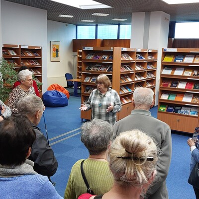 8 marca 2024 roku grupa 50 Seniorów naszego Uniwersytetu Ekonomicznego Trzeciego Wieku odwiedziła gmach Biblioteki Śląskiej. Wizyty była okazją do poznania bogatych i unikatowych zbiorów Biblioteki Śląskiej oraz zobaczenia miejsc niedostępnych na co dzień dla czytelników. Zwiedzanie biblioteki pozwoliło m.in. zapoznać się z bibliotecznym systemem komputerowym, katalogami tradycyjnymi, można było obejrzeć aktualnie prezentowaną w holu głównym wystawę, a także uczestniczyć w pokazach w Pracowni Konserwacji tj.: