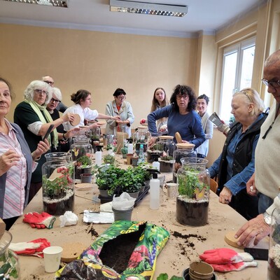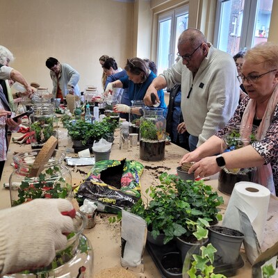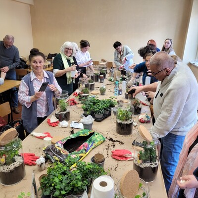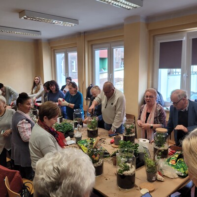 Spotkanie miało twórczy i inspirujący charakter – nie zabrakło ciekawych rozmów, wymiany doświadczeń oraz kreatywnych działań. Uczestnicy chętnie angażowali się w zajęcia, a zdobyta wiedza i własnoręcznie wykonane kompozycje stanowią trwałą pamiątkę tego wydarzenia.