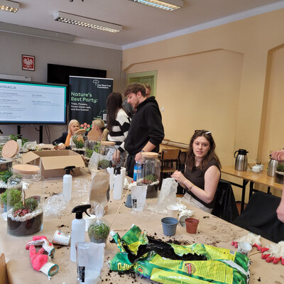 20 marca 2026 roku odbyły się bezpłatne warsztaty ekologiczne z tworzenia lasów w słoiku, zorganizowane we współpracy z Fundacją One More Tree, działającą na rzecz zazieleniania lokalnych przestrzeni. W wydarzeniu wzięli udział słuchacze UETW oraz studenci, którzy mieli okazję nie tylko zdobyć praktyczne umiejętności, ale również poszerzyć swoją wiedzę na temat ekologii i bioróżnorodności podczas wykładu prowadzonego przez ekspertów.
