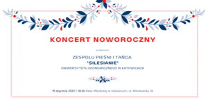 zapraszamy na Koncert Noworoczny, którego organizatorem i wykonawcą jest Zespół Pieśni i Tańca „Silesianie” Uniwersytetu Ekonomicznego w Katowicach oraz Stowarzyszenie Folklorystyczne „Silesianie”.