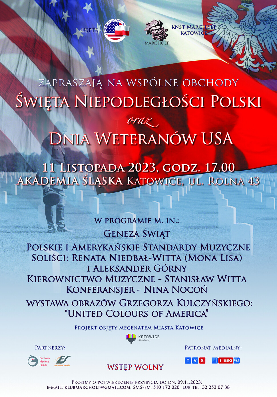 zapraszamy na polsko-amerykańskie obchody Święta Niepodległości Polski oraz Dnia Weteranów USA, które odbędą się 11 listopada br. godz. 17:00 w Akademii Śląskiej Katowice, ul. Rolna 43.
