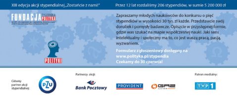 Wystarczy do 30 czerwca wypełnić formularz zgłoszeniowy, który dostępny jest na stronie: www.polityka.pl/stypendia.