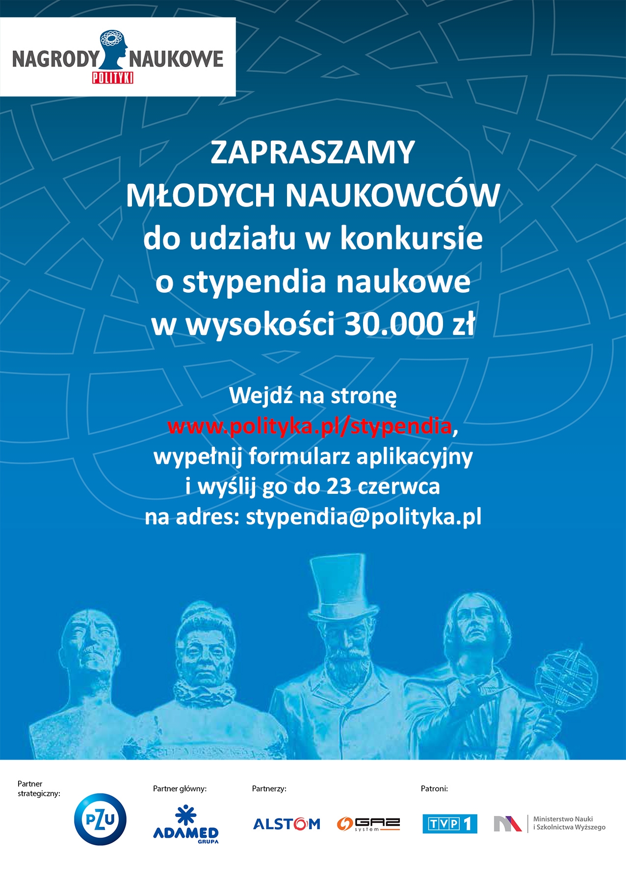 Przypominamy o tym, że jeszcze do 23 czerwca trwa przyjmowanie zgłoszeń od młodych naukowców do 14. edycji Nagród Naukowych POLITYKI.