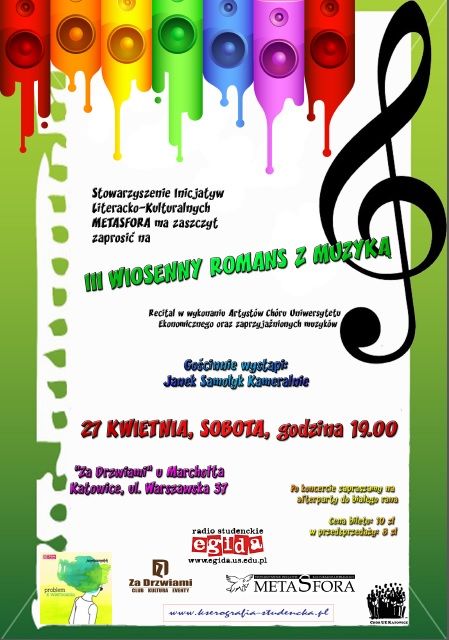 27 kwietnia br. "Za Drzwiami" u Marchołta (Katowice, ul. Warszawska 37) odbędzie się recital w wykonaniu Artystów Chóru Uniwersytetu Ekonomicznego w Katowicach oraz zaprzyjaźnionych muzyków.