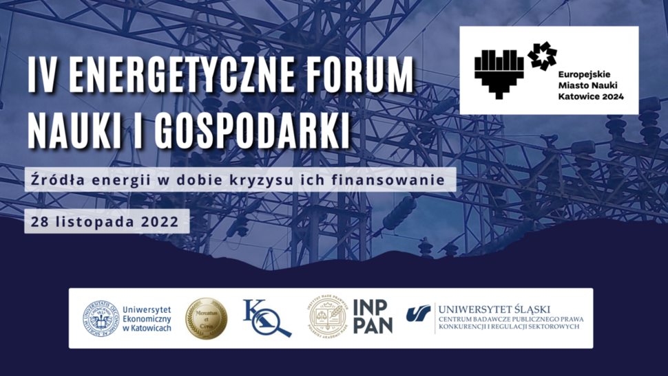 28 listopada 2022 odbędzie się IV Energetyczne Forum Nauki i Gospodarki pn. "Źródła energii w dobie kryzysu i ich finansowanie". Jednym z organizatorów wydarzenia jest Katedra Prawa i Ubezpieczeń Uniwersytetu Ekonomicznego w Katowicach.