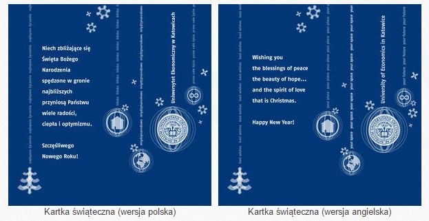 Zachęcamy do skorzystania z elektronicznych kartek świątecznych Uniwersytetu Ekonomicznego w Katowicach w wersji polskiej i angielskiej, które można pobrać pod adresem: www.ue.katowice.pl/media/kartki-swiateczne.
