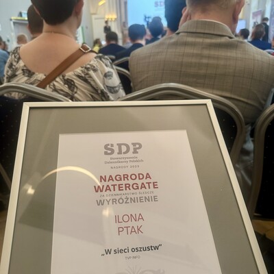 To już trzeci raz, gdy Stowarzyszenie Dziennikarzy Polskich nagradza twórczość Ilony Ptak. W 2023 roku dziennikarka została wyróżniona w kategorii Watergate za reportaż "My z gazowni", a w 2021 roku odebrała I nagrodę im. Adolfa Bocheńskiego, za wyróżniające się dokonania dziennikarskie dla dziennikarzy do 30. roku życia.