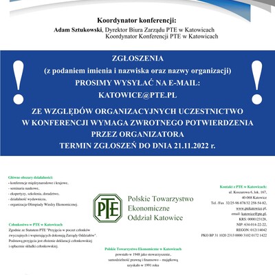 Koordynatorem konferencji będzie natomiast Adam Sztukowski, Dyrektor Biura Zarządu PTE w Katowicach.