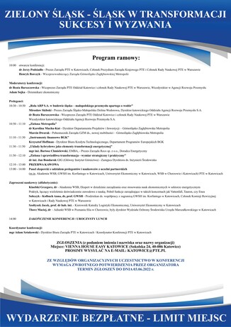 Parking dla uczestników jest bezpłatny. Liczba miejsc ograniczona! Rejestracja pod adresem: katowice@pte.pl.