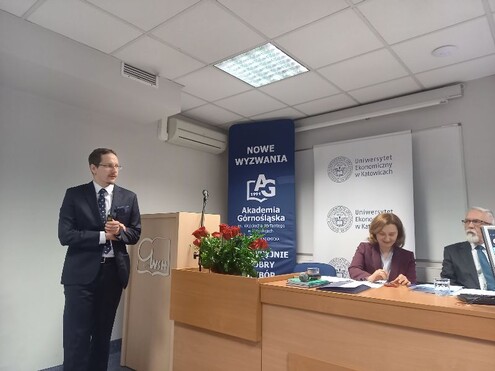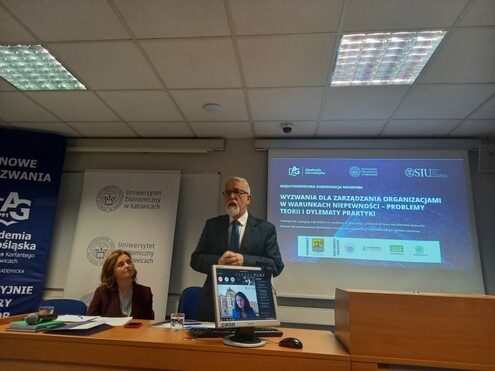 W dniu 8 grudnia br. odbyła się Międzynarodowa Konferencja Naukowa pt. "Wyzwania dla zarządzania organizacjami w warunkach niepewności - problemy teorii i dylematy praktyki". Jednym z organizatorów był Uniwersytet Ekonomiczny w Katowicach. Słowo wstępne oraz życzenia pomyślnych obrad przekazała uczestnikom JM Rektor prof. dr hab. inż. Celina M. Olszak. Część merytoryczną konferencji otworzył Dziekan Wydziału Zarządzania prof. dr hab. Wojciech Dyduch.