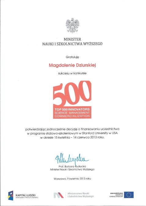 Pani mgr Magdalena Dziurska, uczestniczka studiów doktoranckich Naszego Uniwersytetu, prowadząca badania pod kierunkiem prof. UE dr hab. Wojciecha Czakona została laureatką prestiżowego konkursu MNiSW Top 500 Innovators. Gratulujemy!