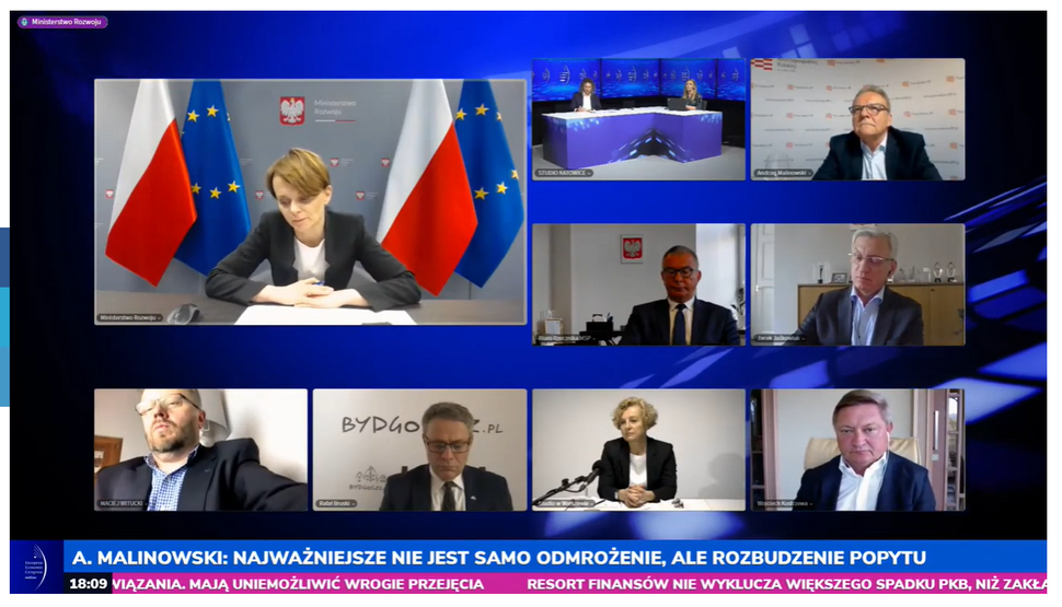 20 maja br. zorganizowano również pierwsze tego typu wydarzenie z wykorzystaniem zdalnych technologii komunikacyjnych - Okrągły Stół Gospodarczy. Inicjatorem sesji były organizacje samorządowe i ogólnopolskie organizacje przedsiębiorców – Unia Metropolii Polskich, Stowarzyszenie "Metropolia Warszawa" oraz Rada Przedsiębiorczości. W wydarzeniu uczestniczyła m.in. Wicepremier Jadwiga Emilewicz oraz Jolanta Jaworska, Vice-President Advocacy, Public Affairs & Regulatory, członek zarządu ABSL, dyrektor Public Affairs & Regulatory IBM, Przewodnicząca Rady Uczelni Uniwersytetu Ekonomicznego w Katowicach