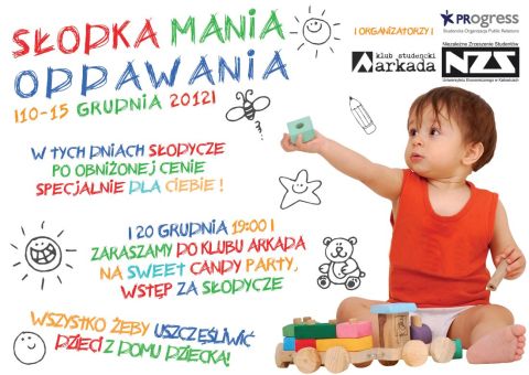 Niezależne Zrzeszenie Studentów oraz SOPR PRogress zapraszają do świątecznej zbiórki słodyczy. W dniach 10-15 grudnia przy sklepikach w budynkach A, B, L i N będą wystawione kosze, do których będzie można wrzucać słodycze.
