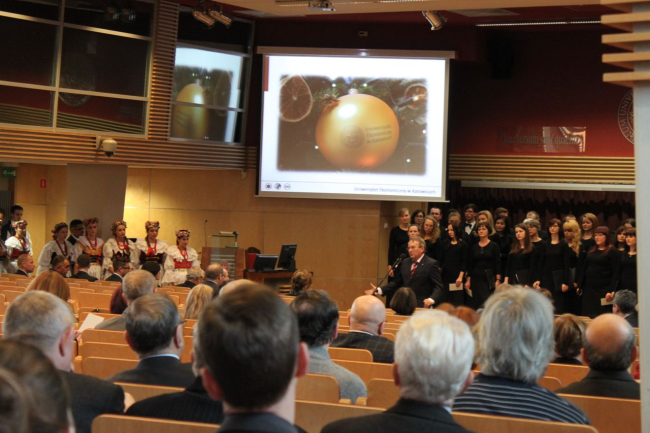 19 grudnia br. w Auli im. dr. J. Lisaka odbyło się Uroczyste Spotkanie Opłatkowe dla Pracowników Uczelni z udziałem JM Rektora Uniwersytetu Ekonomicznego w Katowicach prof. dr. hab. Leszka Żabińskiego.