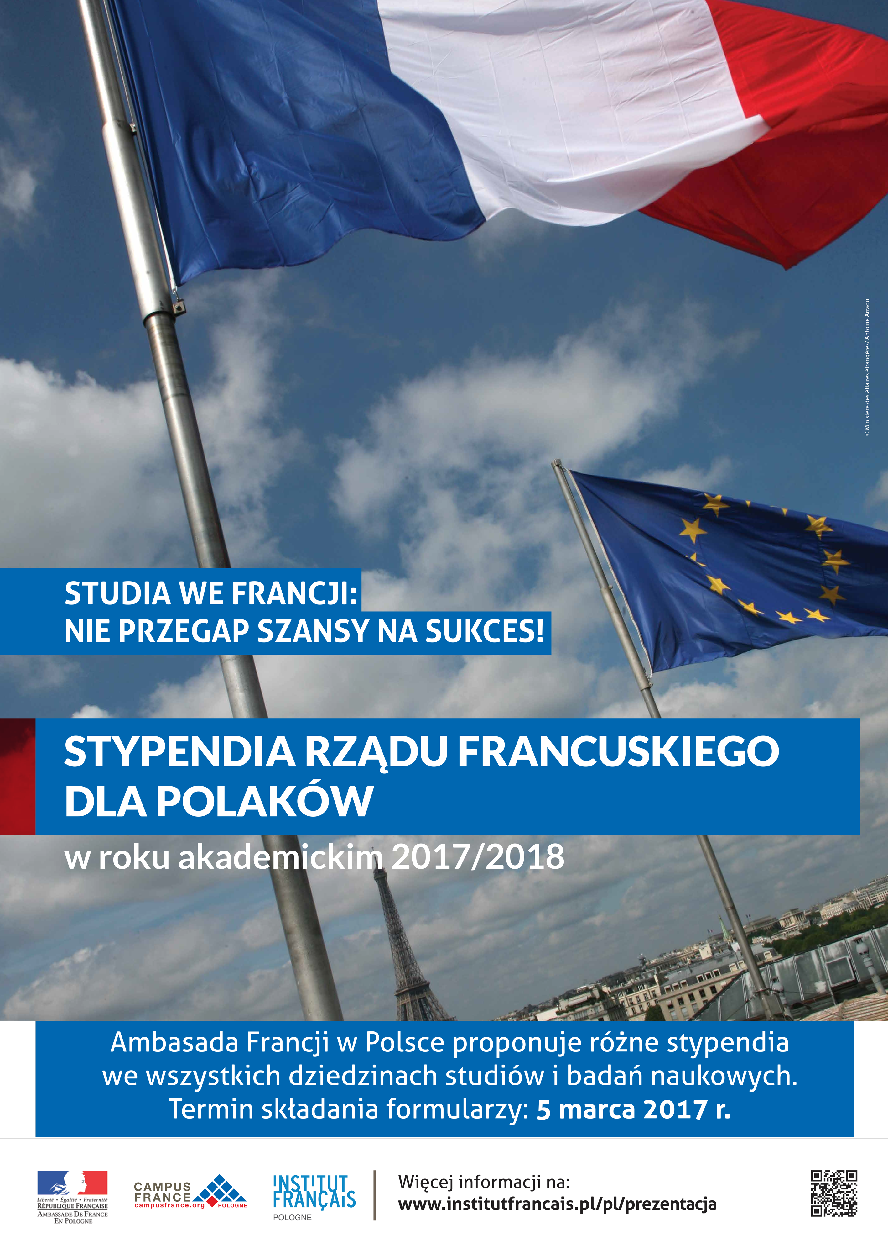 Do 5 marca 2017 r. można składać wnioski o stypendia dla studentów i naukowców. Dzięki dofinansowaniu zdolni naukowcy będą mogli ukończyć studia magisterskie, napisać doktorat lub prowadzić badania we Francji.