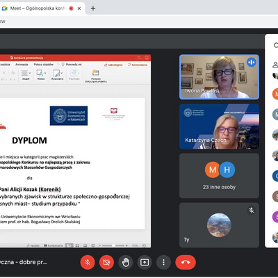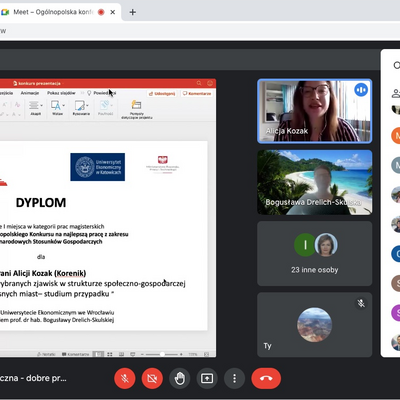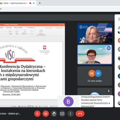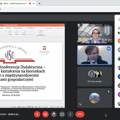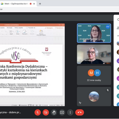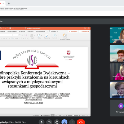 W ubiegłą środę 23 czerwca 2021 r. odbyła się Ogólnopolska konferencja dydaktyczna - dobre praktyki kształcenia na kierunkach związanych z Międzynarodowymi Stosunkami Gospodarczymi, której towarzyszyło uroczyste ogłoszenie wyników kolejnej edycji Ogólnopolskiego Konkursu na najlepszą pracę magisterską i licencjacką z zakresu MSG. Uniwersytet Ekonomiczny w Katowicach był organizatorem tegorocznej VII edycji konkursu koordynowanej przez dr Katarzynę Czech. Honorowy Patronat nad konkursem objęło Ministerstwo Rozwoju, Pracy i Technologii.