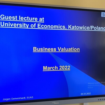 Na zaproszenie Prodziekana - Dyrektora Filii w Rybniku dra inż. Tomasza Zielińskiego oraz Opiekuna Koła Naukowego "Synergia" mgr Marty Martyniak w ramach zajęć on-line prowadzonych przez Panią dr Ewę Wójcik Pan Profesor wygłosił dla studentów wykład "Business Valuation", traktujący o różnych aspektach wyceny przedsięwzięcia inwestycyjnego. Wizyta w rybnickim kampusie akademickim była nadto okazją do wymiany doświadczeń w zakresie wymiany studentów między naszymi uczelniami. Wcześniej, w październiku 2021 roku, nasi pracownicy (dr Jolanta Pasionek, mgr Marta Martyniak i mgr Wojciech Kaczmarczyk) gościli na Hochschule Schmalkalden, gdzie zwiedzili nowoczesny kampus i uczestniczyli w zajęciach prowadzonych przez prof. Gemeinhardta poświęconym praktycznym aspektom rachunkowości.