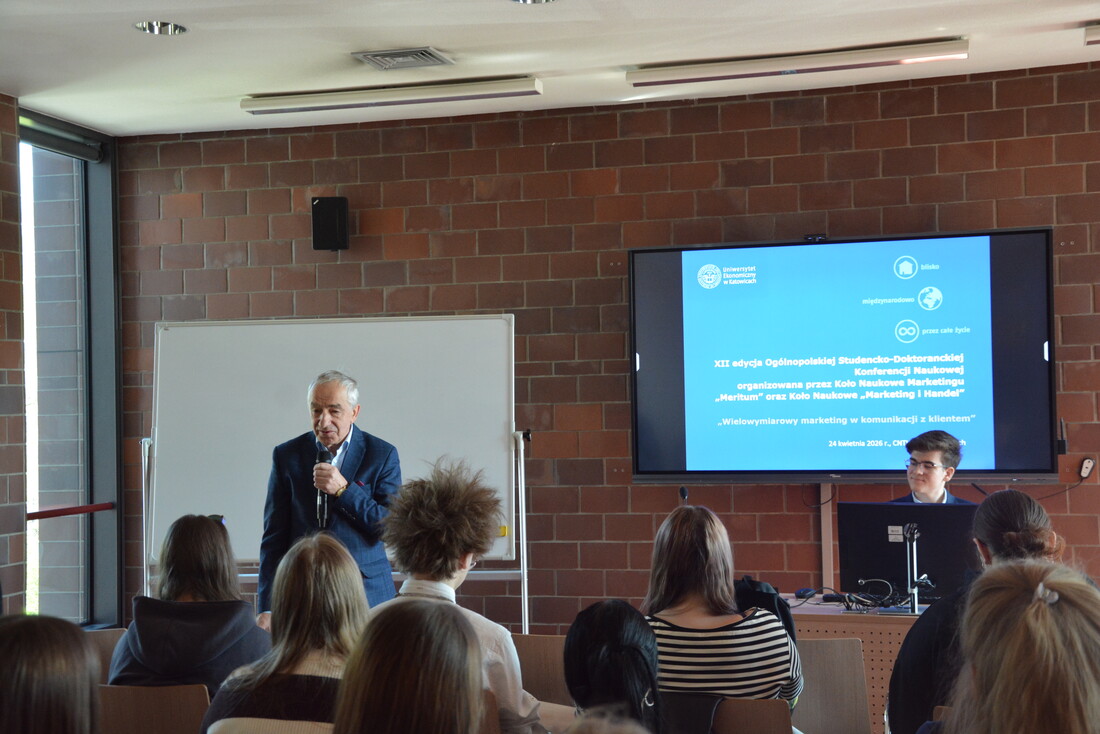 W piątek 24 kwietnia br. miała miejsce XII edycja Ogólnopolskiej Studencko-Doktoranckiej Konferencji Naukowej "Wielowymiarowy marketing w komunikacji z klientem". W tym roku odbyła się ona po raz trzeci w formie hybrydowej - zarówno stacjonarnej, jak i zdalnej na platformie Google Meet. Pomysłodawcą cyklu Konferencji jest Koło Naukowe Marketingu "Meritum", działające przy Katedrze Badań Rynkowych i Marketingowych, którego opiekunem naukowym jest prof. UE dr hab. Zbigniew Spyra. Natomiast kolejna edycja powstała przy współpracy z Kołem Naukowym "Marketing i Handel", którego opiekunem naukowym jest mgr Justyna Krawczyk.
