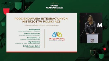 Dużą uwagę zwrócono również na ciągle rozwijający się sport osób z orzeczoną niepełnosprawnością i tu także zostaliśmy docenieni. Za udział i organizację Integracyjnych Mistrzostw Polski AZS specjalne podziękowanie przyznano dr Marii Gorczyńskiej, Pełnomocnikowi Rektora ds. Osób z Orzeczoną Niepełnosprawnością.