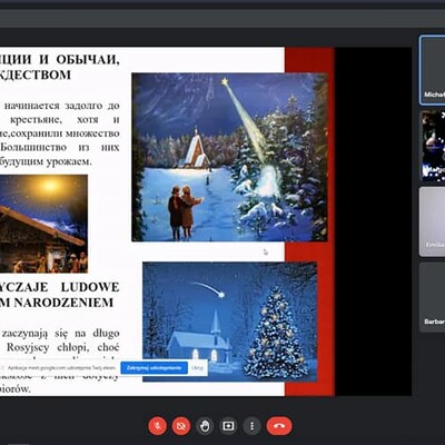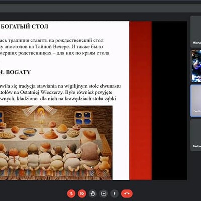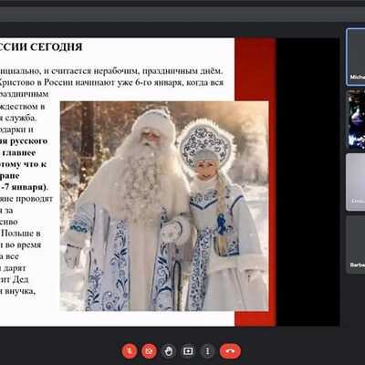 Do świątecznego telemostu specjalnie przygotowali się nasi goście, studenci Wydziału Filologicznego UR wraz z opiekunem dr Małgorzatą Dziedzic, przedstawiając świąteczne prezentacje w języku rosyjskim i polskim. Oba spotkania przebiegły w miłej i ciepłej atmosferze.