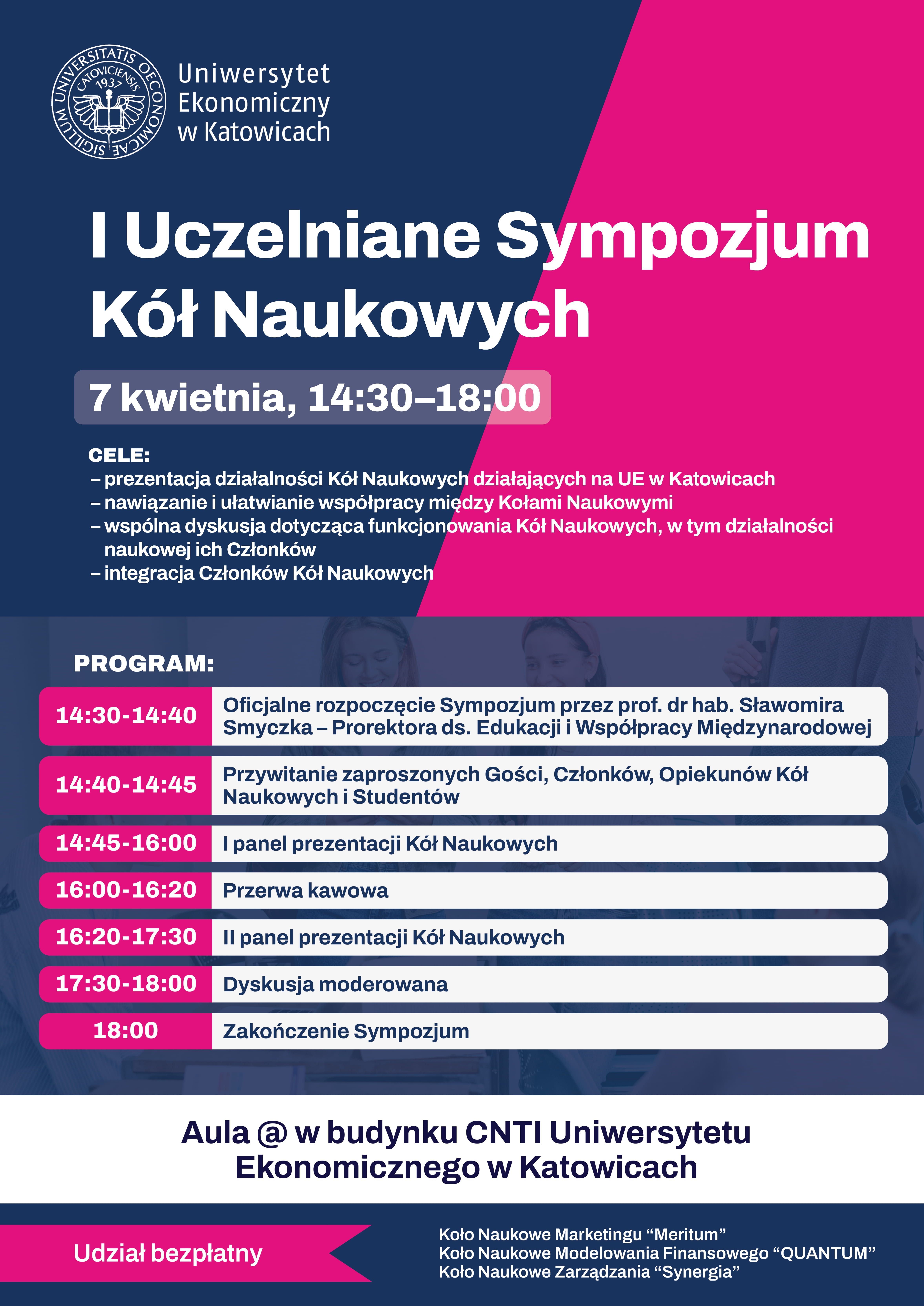 7 kwietnia 2022 r. odbędzie się I Uczelniane Sympozjum Kół Naukowych UE w Katowicach.