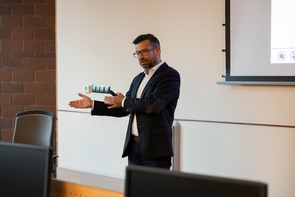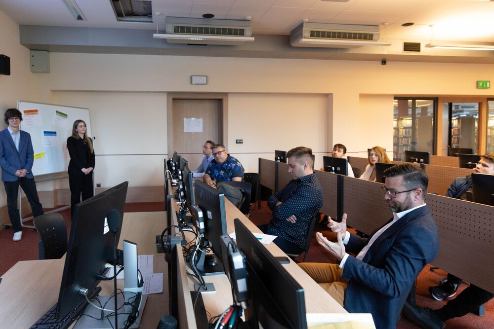 Po krótkim wprowadzeniu uczestnicy przystąpili do pracy projektowej. Za wprowadzenie do projektu odpowiadał prof. dr hab. Sławomir Smyczek, a następnie Gene Vangampelaere przybliżył temat transformacji cyfrowej oraz jej aktualnych trendów. Zwieńczeniem dnia były warsztaty "Studium przypadku firmy PLM Group", które poprowadził praktyk Patryk Mączko, CEO PLM Group.