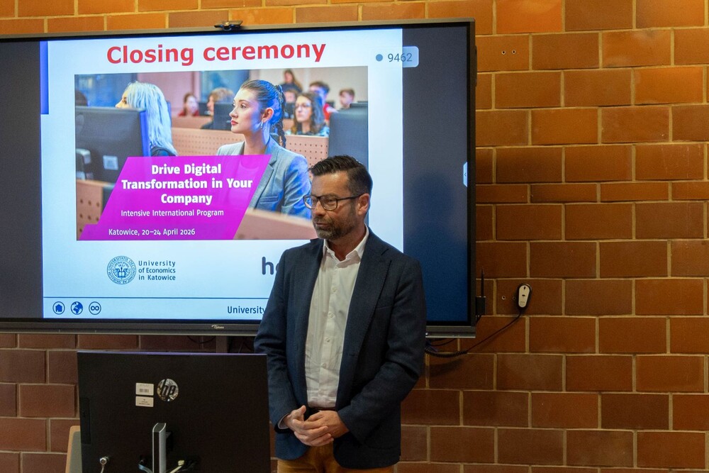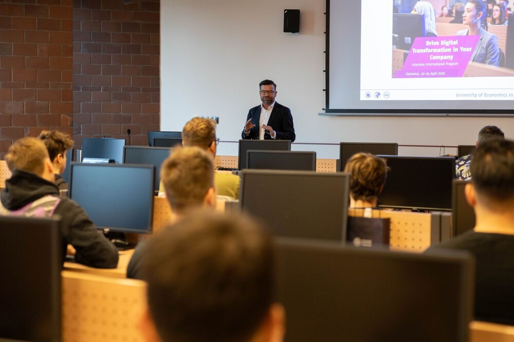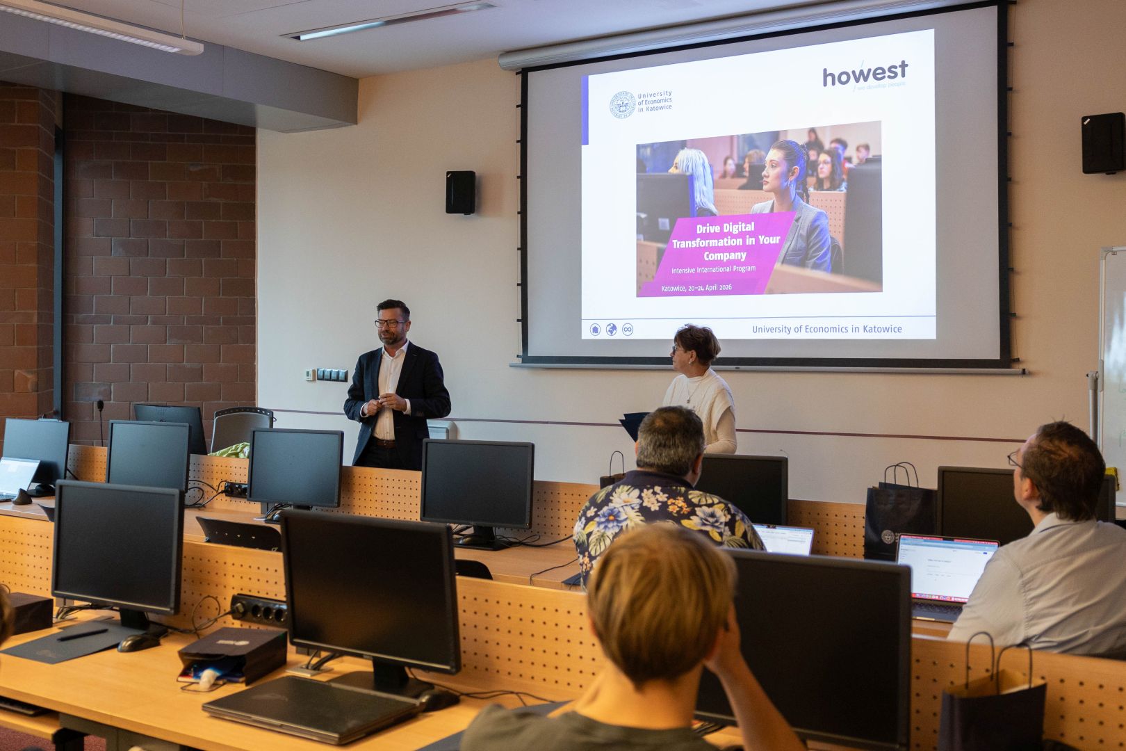 W dniach 20-24 kwietnia 2026 r. na Uniwersytecie Ekonomicznym w Katowicach odbyła się kolejna edycja międzynarodowego projektu realizowanego we współpracy z Howest University of Applied Science w Belgii. Tegoroczna edycja nosiła tytuł "Drive Digital Transformation in Your Company", a studenci mieli okazję uczestniczyć m.in. w wykładzie dot. transformacji cyfrowej oraz poznać obowiązujące w niej trendy.
